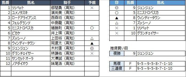 2023年3月15日(水) 高知競馬の全レース予想です。
